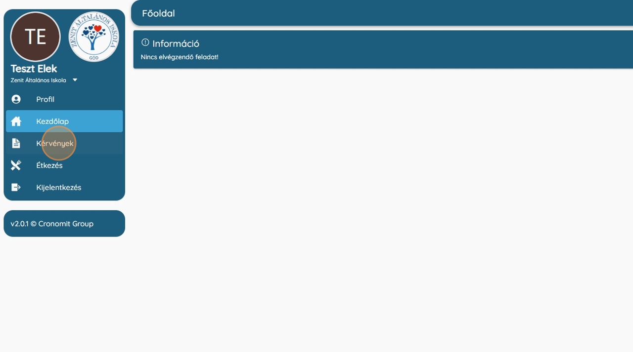 3 Bal oldali menüben a "Kérvények" modul kiválasztása.