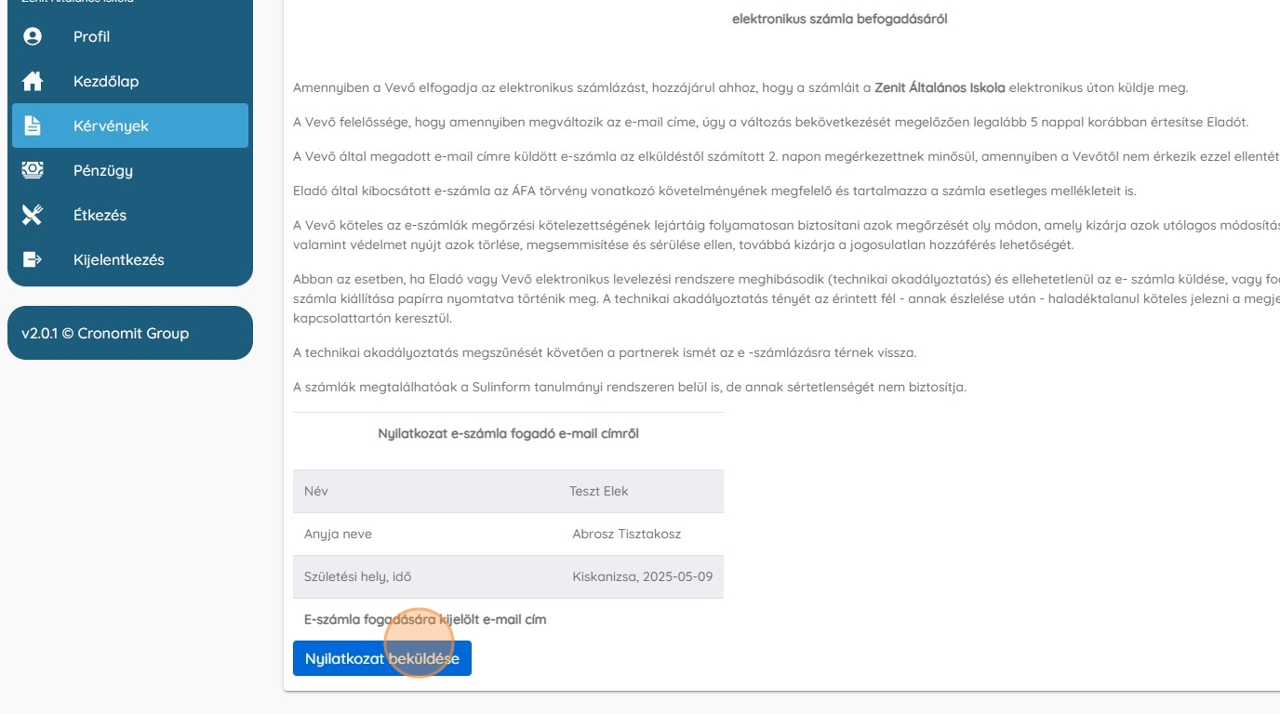 A számviteli törvény értelmében, ahhoz, hogy elektronikus számlát tudjunk nektek küldeni a rendszeren keresztül, nyilatkoznotok kell. Ehhez készíttettünk egy kérvényt, amit EGYSZER kell leadni.